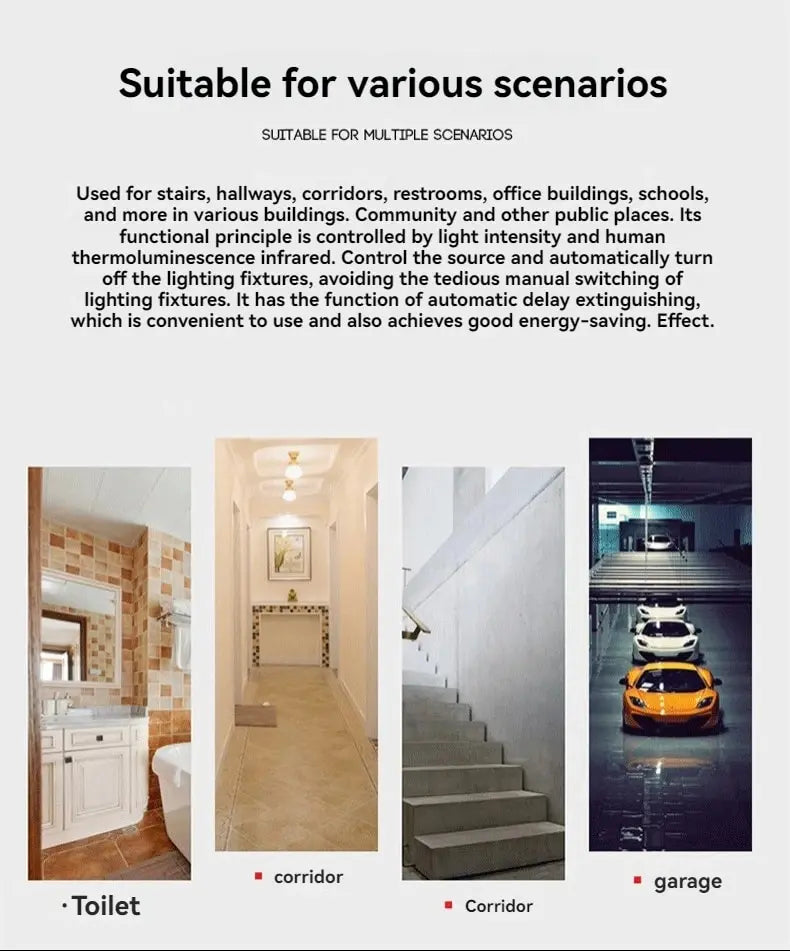 The sound and light control delay lamp holder is controlled by a combination of sound and light. During the day or when the light is strong, the light control locks the circuit, achieving a state of no action even when there is sound. However, at night or when the light is dim, the light control circuit is unlocked, and the sound control effect is turned on, achieving the power on and off of the sound control lamp holder.