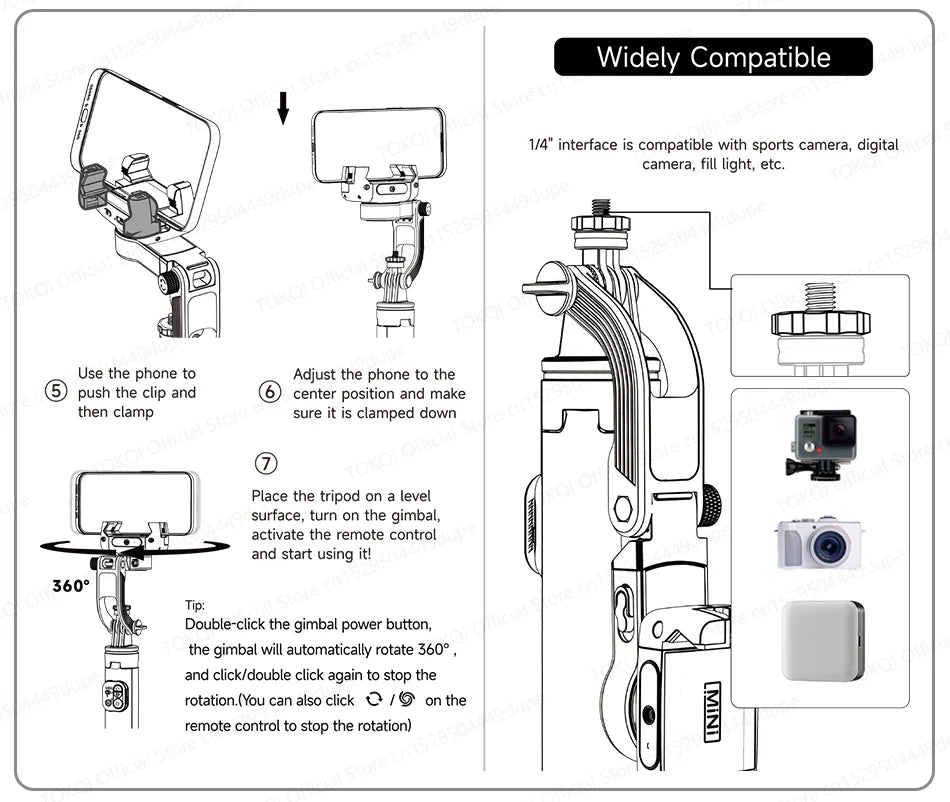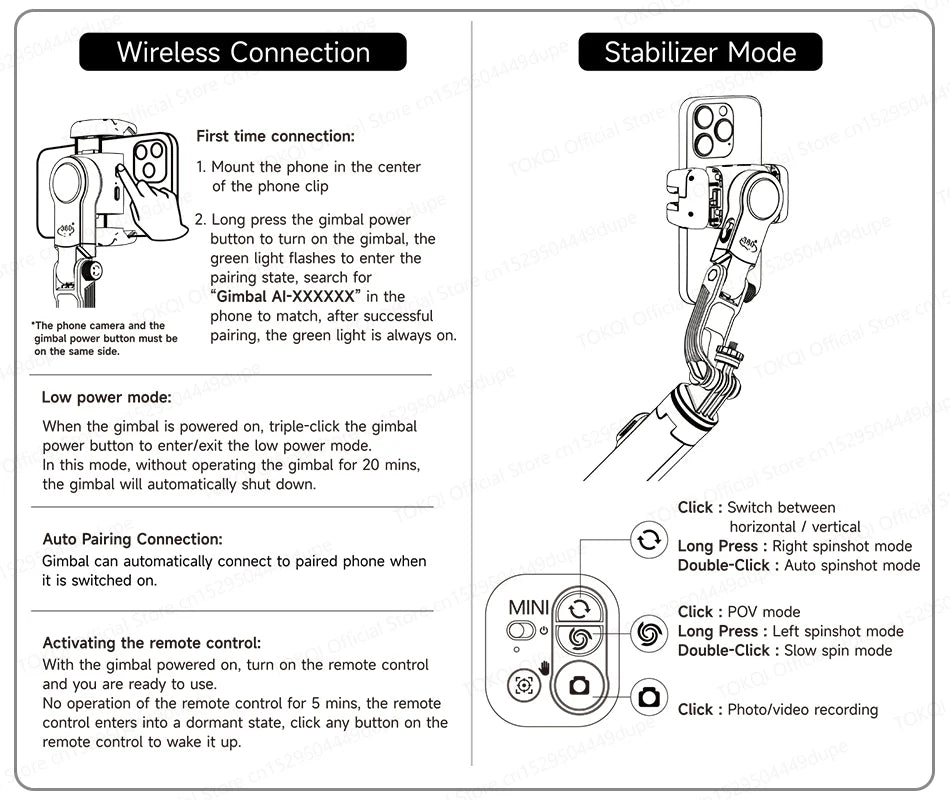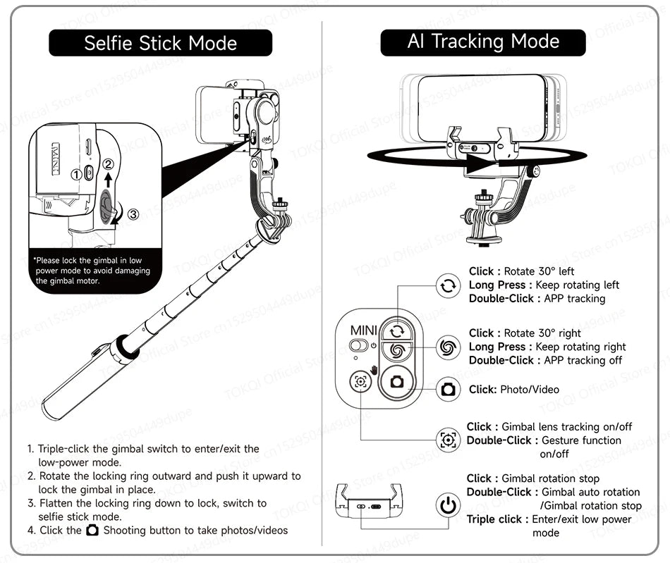 3.3 in 1, not only stabilizer, but also tracking gimbal and selfie stick.
