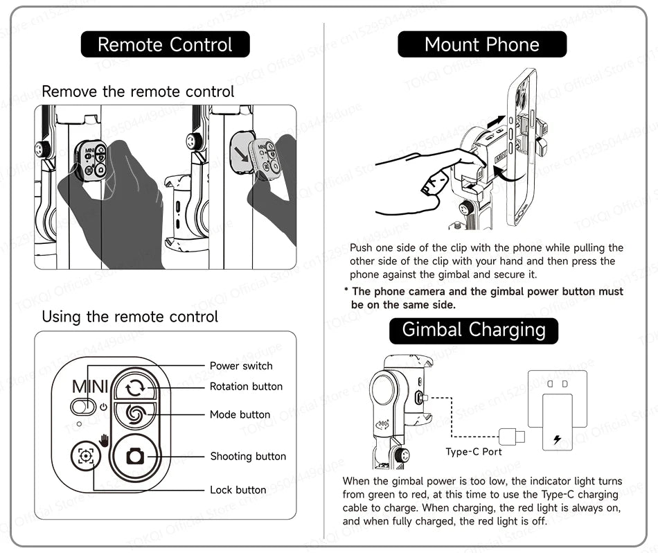 Note: Please use the gimbal in the unlocked state, avoid damaging the motor.