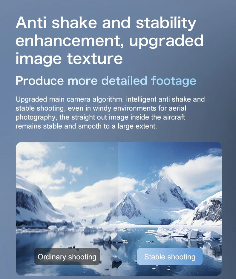 - **Stable Flight & Precision Positioning:** Incorporates optical flow positioning and fixed-height mode for effortless stability. The six-axis gyroscope ensures smooth and precise control during flight, whether for photography, videography, or recreational flying.