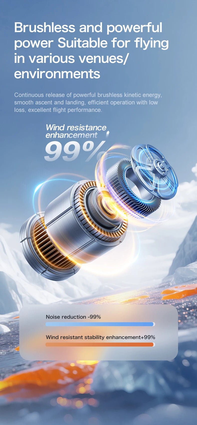 - **Dual-Lens Brushless Motor System:** Features durable brushless motors for stronger power output, longer lifespan, and quieter operation—perfect for stable hovering, smooth maneuvering, and extended flights.