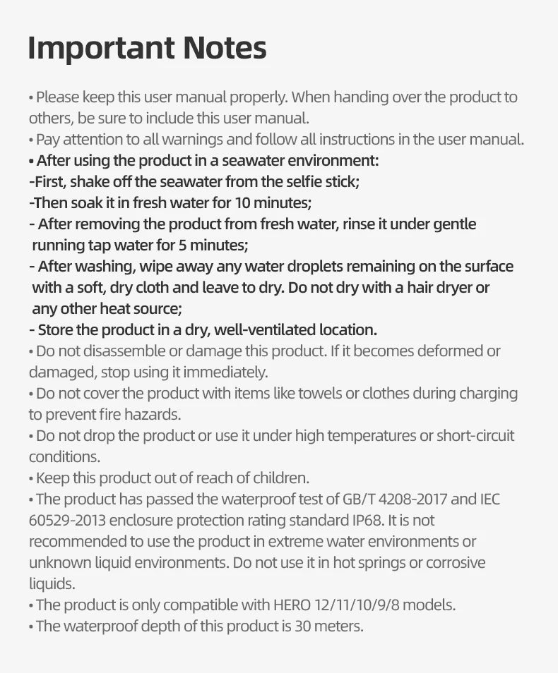 【Super Compatibility】This compact and light-weight underwater selfie stick is fully compatible with Compatible models: hero 12/11/10/9/8. If the diving depth is greater than 10 meters, please use it with a waterproof shell. (Waterproof case not included in the set).