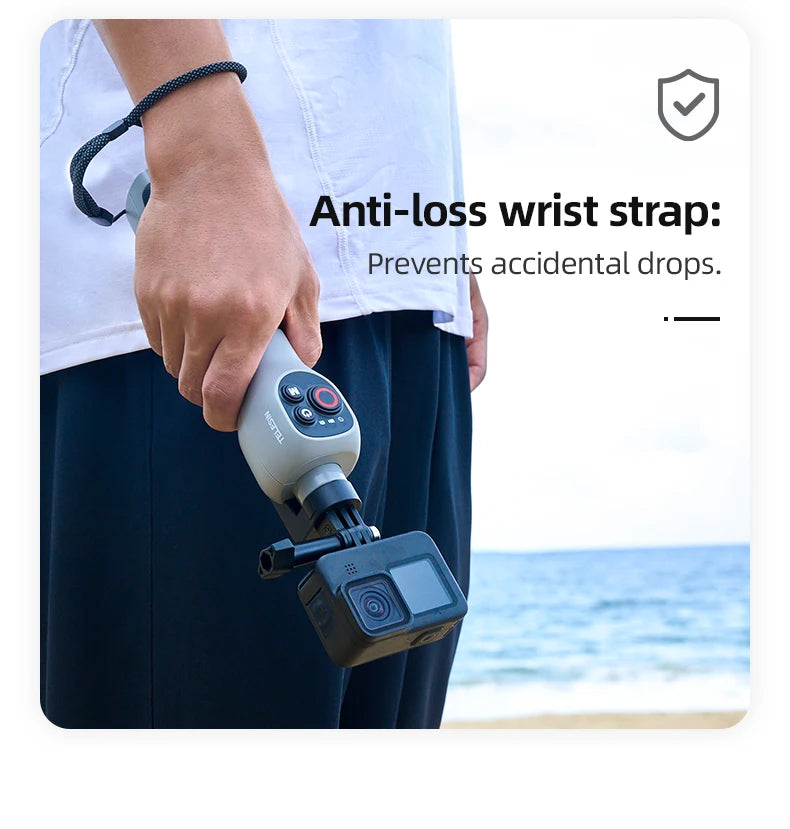 【Extendable & Lightweight And Easy To Use】It only weighes 9.8 Ozs / 267 g. Length: 7" when collapsed, And this extension pole could be adjusted to a maximum length of 33 inches, granting an expansive field of view. In addition, we are equipped with anti slip ropes to prevent hands from slipping when underwater.