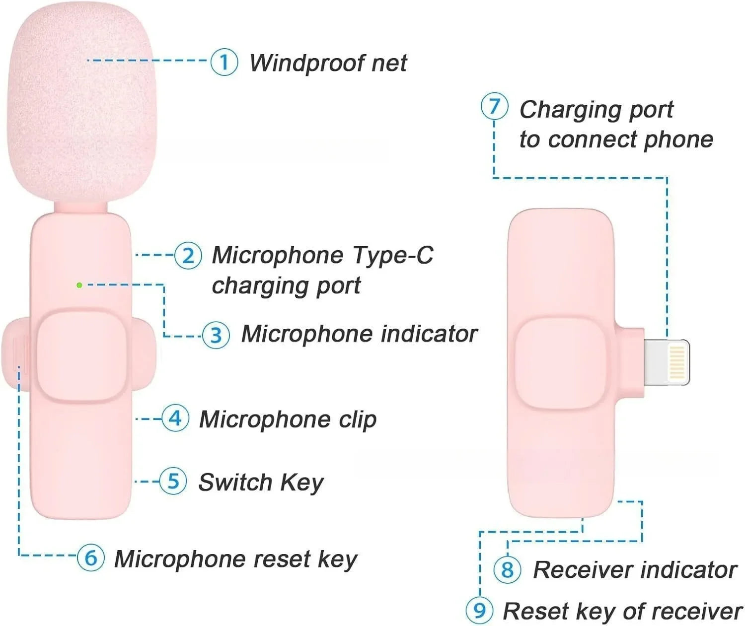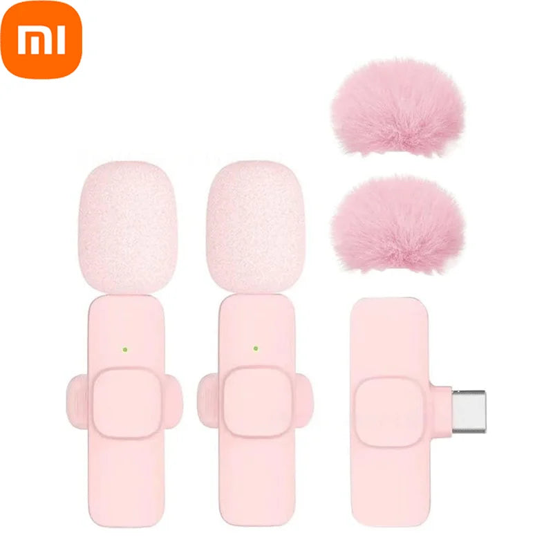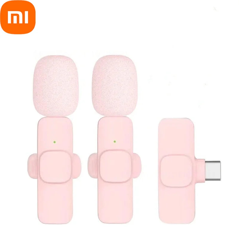 Xiaomi Pink Wireless Lavalier Microphone for iPhone Android PC Live Gaming Phone Portable Audio Video Recording Vlog Microphone