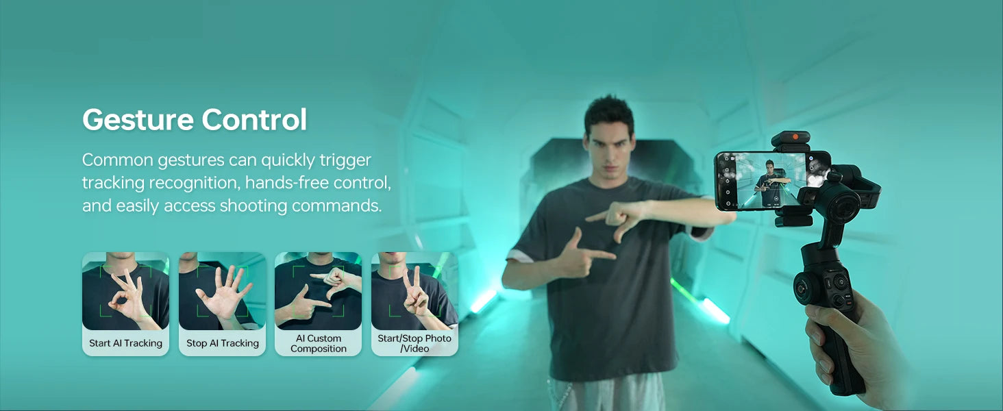 Common gestures can quickly trigger tracking recognition, hands-free control.and easily access shooting commands. SMOOTH 5S AI Tracking Handheld Stabilizer 3-Axis Smartphone Gimbal Outdoor Gimbals 3-Axis Stabilization