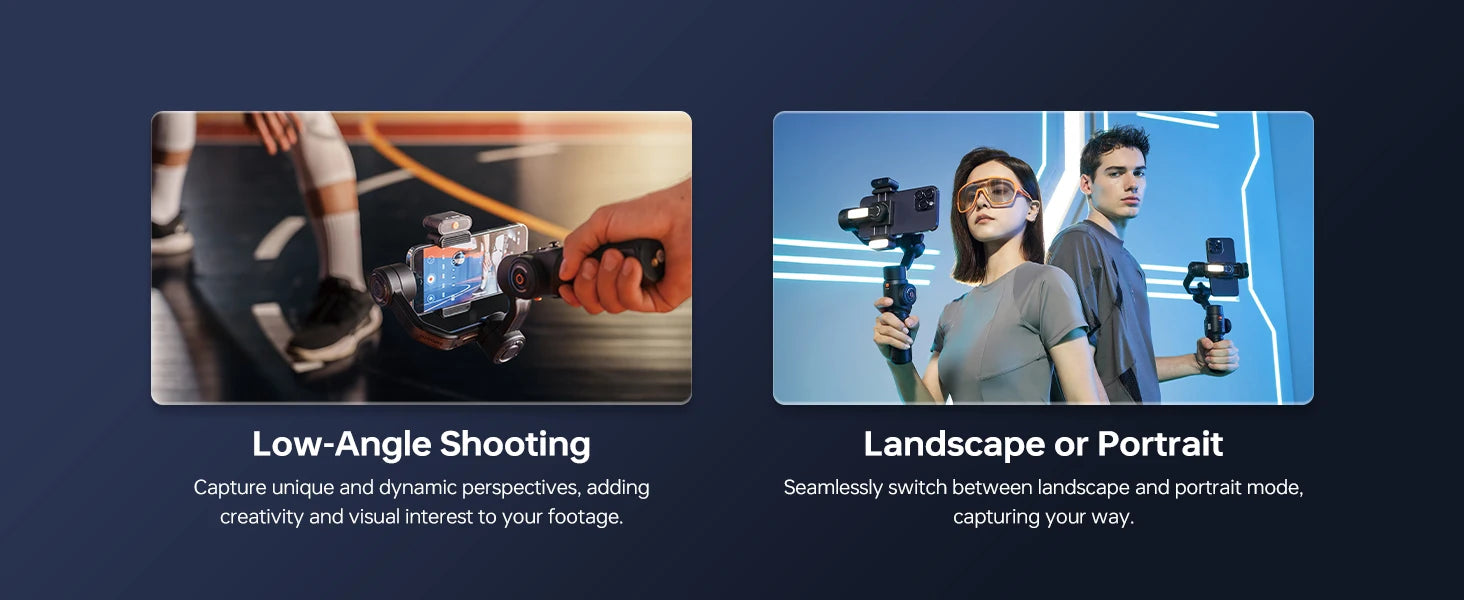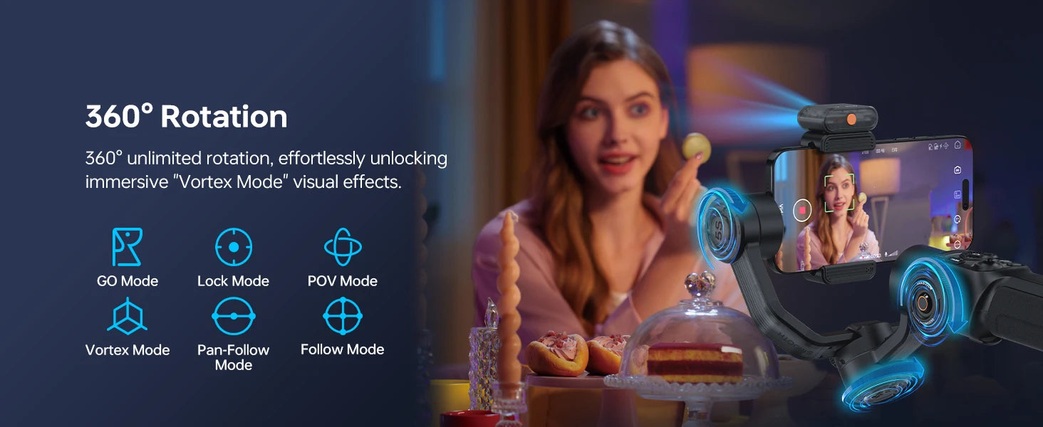 360° unlimited rotation, effortlessly unlocking immersive "Vortex Mode" visual effects. SMOOTH 5S AI Tracking Handheld Stabilizer 3-Axis Smartphone Gimbal Outdoor Gimbals Focus/Zoom Control
