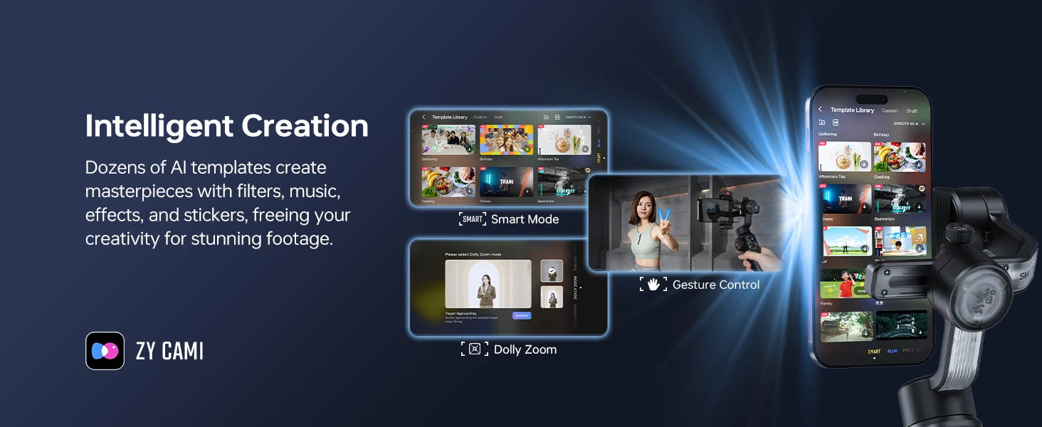 Dozens of Al templates create masterpieces with filters, music,effects, and stickers, freeing your creativity for stunning footage. SMOOTH 5S AI Tracking Handheld Stabilizer 3-Axis Smartphone Gimbal Outdoor Gimbals Professional Params Adjustment