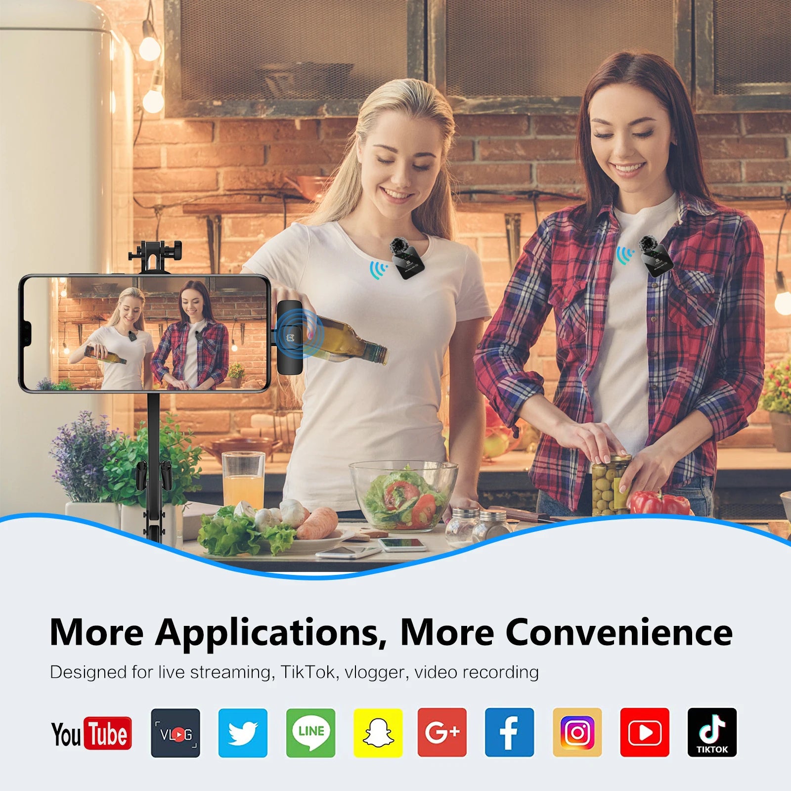 PULUZ Wireless Lavalier Microphone Portable Audio Video Recording Mini Mic for iPhone Android Outdoor Live Broadcast Phone Mic