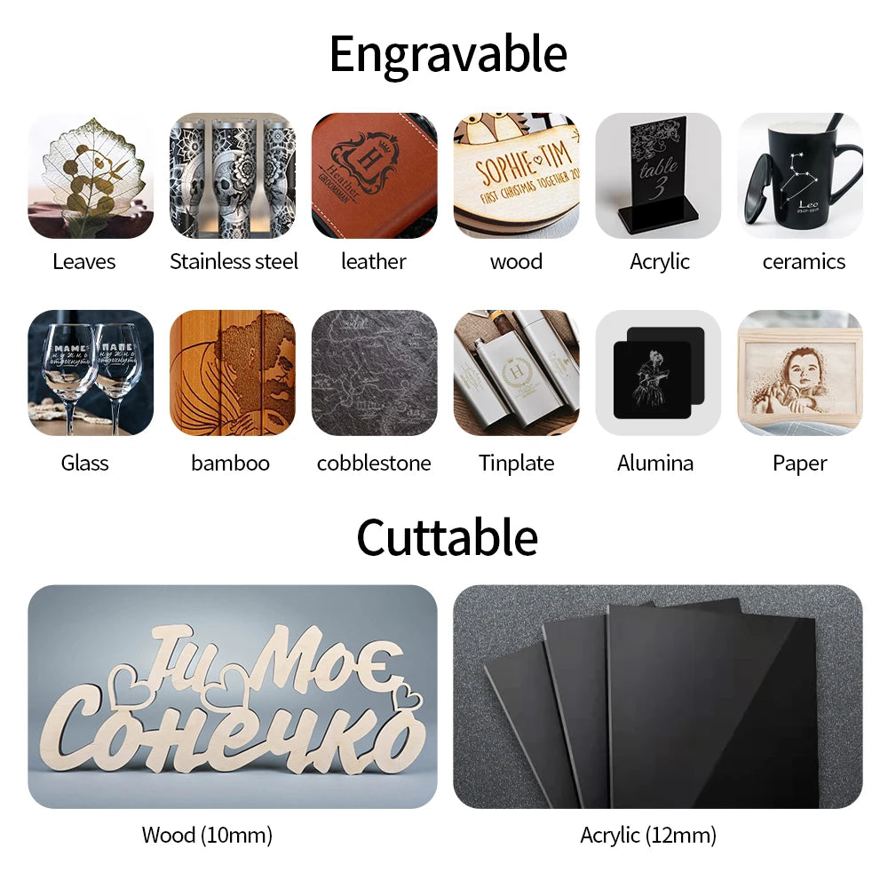 Engraving Materials:Wood,Plastic,Paper,Leather,Acrylic,Glass,etc