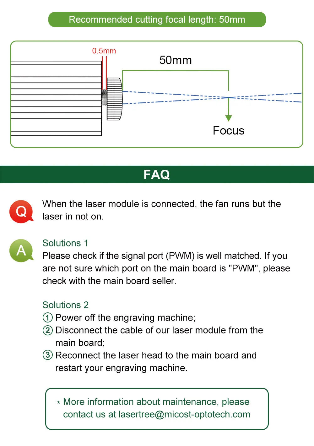 Note��:Please wear appropriate safety glasses when use laser module to prevent laser light, even any reflections from entering to the eye. If you need pre-sale consultation or encounter any problems, please feel free to contact us directly. we will troubleshoot and solve the problem for you!