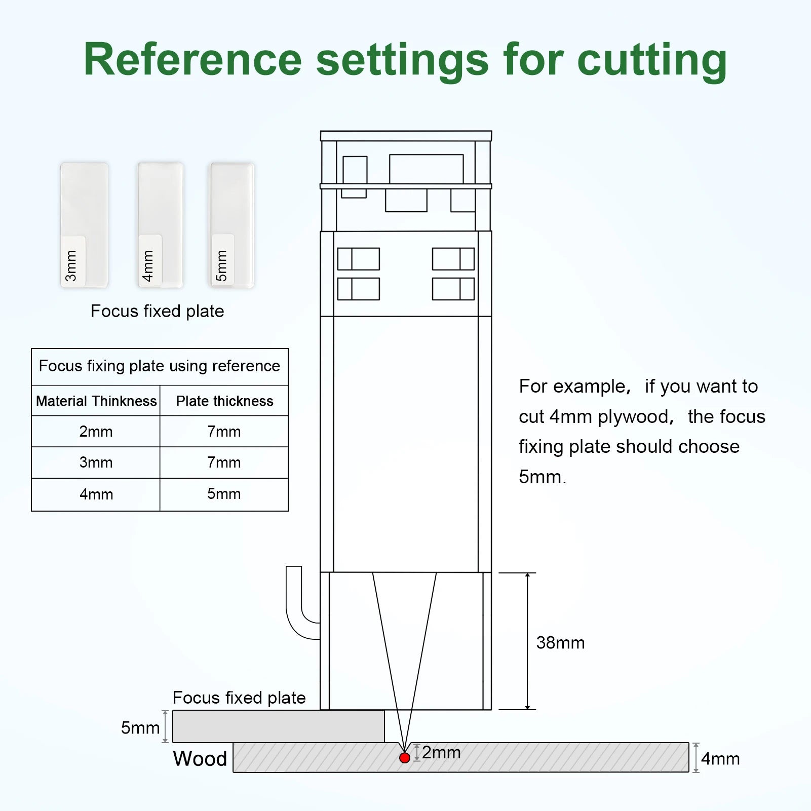 a. The cutting focal length is 50mm, it can cut through 1-2mm basswood plywood at one time